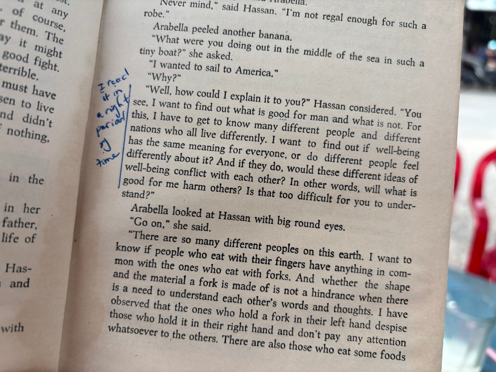 There are moments when readers feel worried because of the fights and dangers around the characters. But then suddenly, there are quiet moments — deep conversations about life that make you pause and think. How can a little girl have such reflective dialogues with her wandering friend, Hassan? Their conversations about goodness and the meaning of life stay with you.